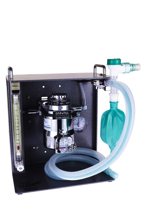 Non-rebreathing (NRB) Coaxial circuit: FG tube inside the expiratory corrugated tube. Has a visible, safety APL valve that relieves pressure when fully closed & a secure moulded Tee connection to 22mm anaesthetic machine FG outlet. 22mm (7/8″) ID x 1.6m (5′) long corrugated tube, 2L bag & 22mm (7/8″) WAG adapter. NRB FG flow 200ml/kg/min – for small animals to 30kg (65lb).