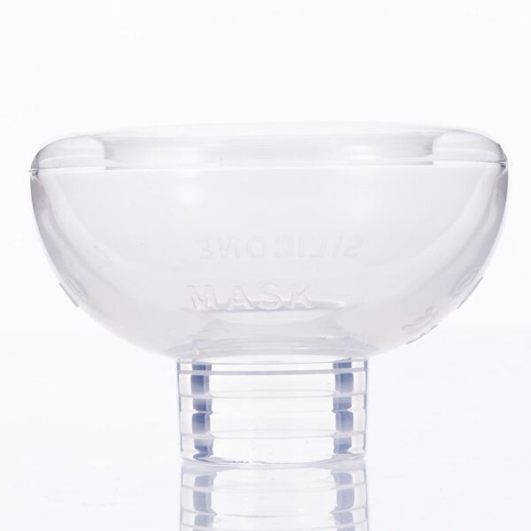 Mask 1-piece silicon 50mm OD, internal depth = 30mm; rolled cushion seal with 30mm (2″) aperture; molded breathing circuit inlet 15mm M.