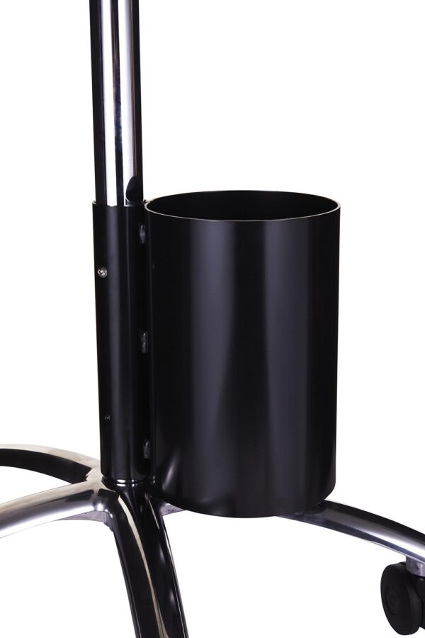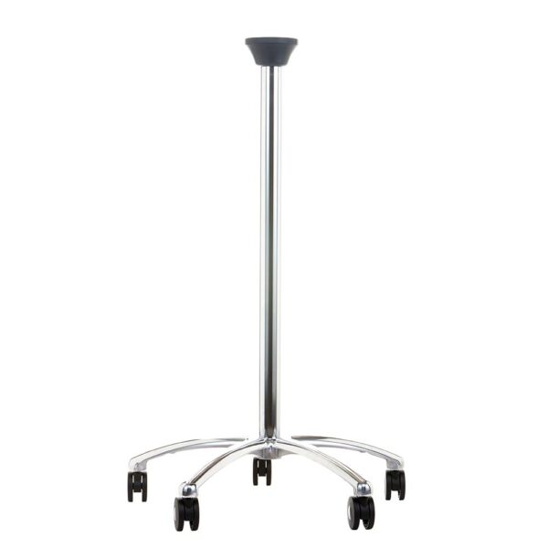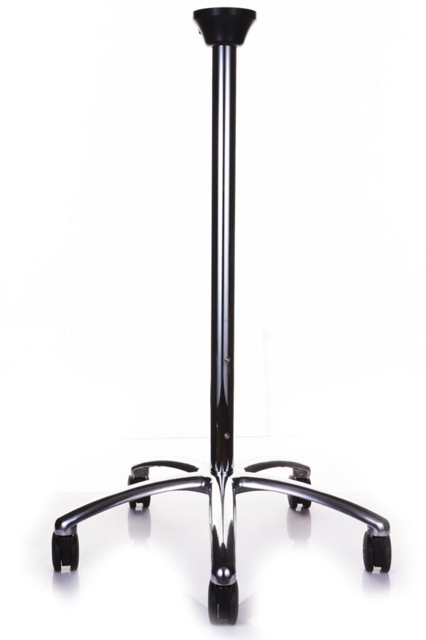 For mobility: stable 75cm OD 5 star Alu. wheel base with 80mm OD dual castors, 100cm chrome pole, acetal pole mount and all fasteners. For Stinger/Darvall monitor chasis via locating holes.