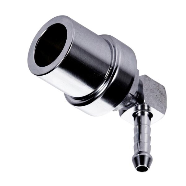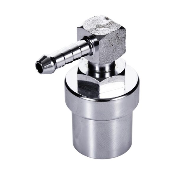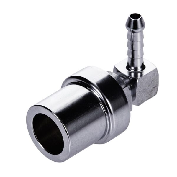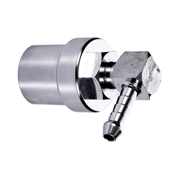 Chrome brass AS standard vaporiser tapered outlet cap. Includes elblow hosetail fitting for flexible tube. Will fit all AS standard vaporiser and mount tapered outlets. Machined and made in Australia to precision QA standards. 11/16″ or shift spanner used to tighten or losen from mating taper. Always use oxygen safe grease when fitting.