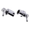 Chrome brass AS standard vaporiser tapered inlet & outlet cap set. Includes elblow hosetail fittings for flexible tube. Will fit all AS standard vaporiser and mount tapered outlets. Machined and made in Australia to precision QA standards. 11/16″ or shift spanner used to tighten or losen from mating taper. Always use oxygen safe grease when fitting.