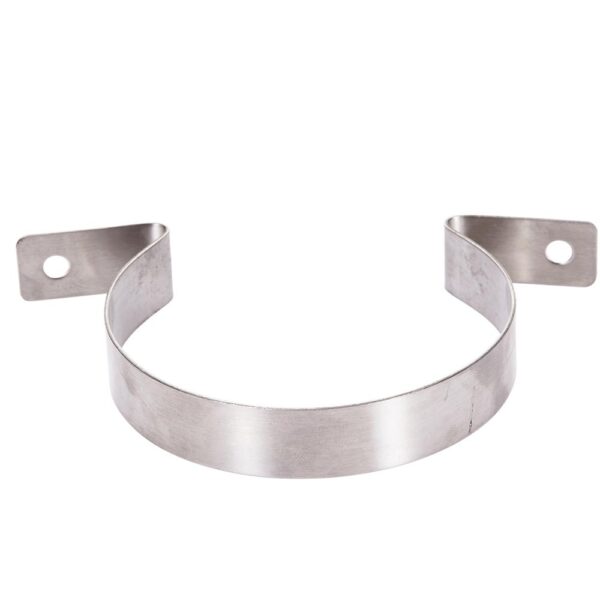 Horizontal SS metal bracket 90 mm diam x 20mm with 2 x 6.5mm mount holes: fits around Air-Break between the gas inlet & gas oulet. Fixes Air-Break to walls, tables or anesthetic equipment.